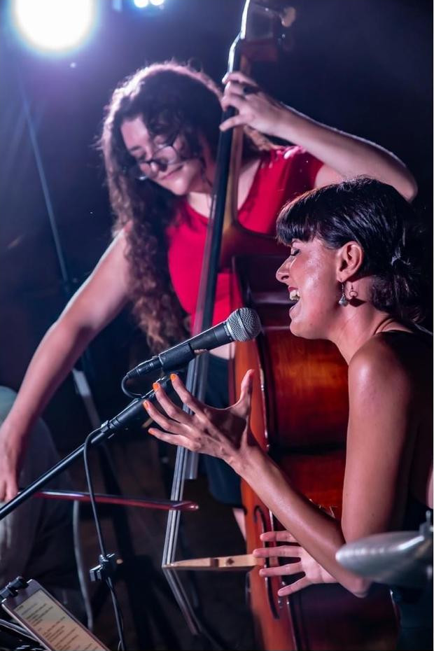 Veronica Perego Contrabbasso e Valeria Quarta voce e percussioni; con il loro “ nomadismo