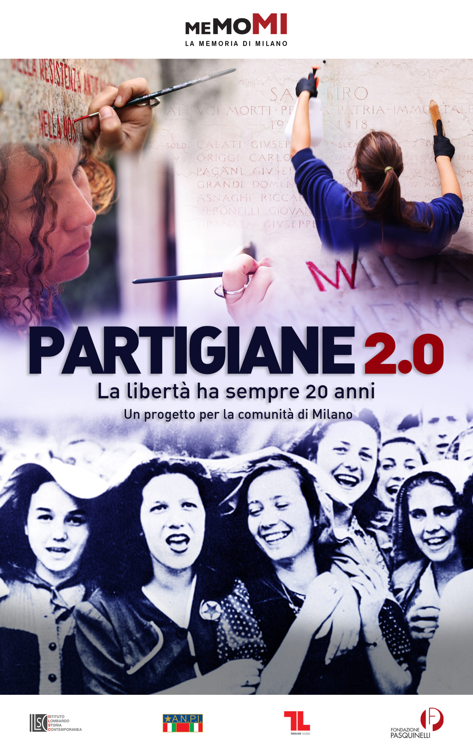 Un passaggio, tra ieri e oggi, che si anima attraverso le parole di tre protagoniste di allora: Laura Wronowski, Ebe Bavestrelli, Dina Croce, tre nomi storici della Resistenza italiana che ripercorrono la loro esperienza di partigiane, aprendo i cassetti più intimi della memoria personale e offrendo spazi di riflessione generale sul ruolo delle donne. Tema su cui si confrontano, nei gesti e nelle parole, le giovani “partigiane 2.0”, Ilaria Laise e Cecilia Gnocchi, riprese sul campo nelle strade e nelle piazze milanesi mentre restaurano le lapidi dei partigiani, tra scale, solventi e tinture.