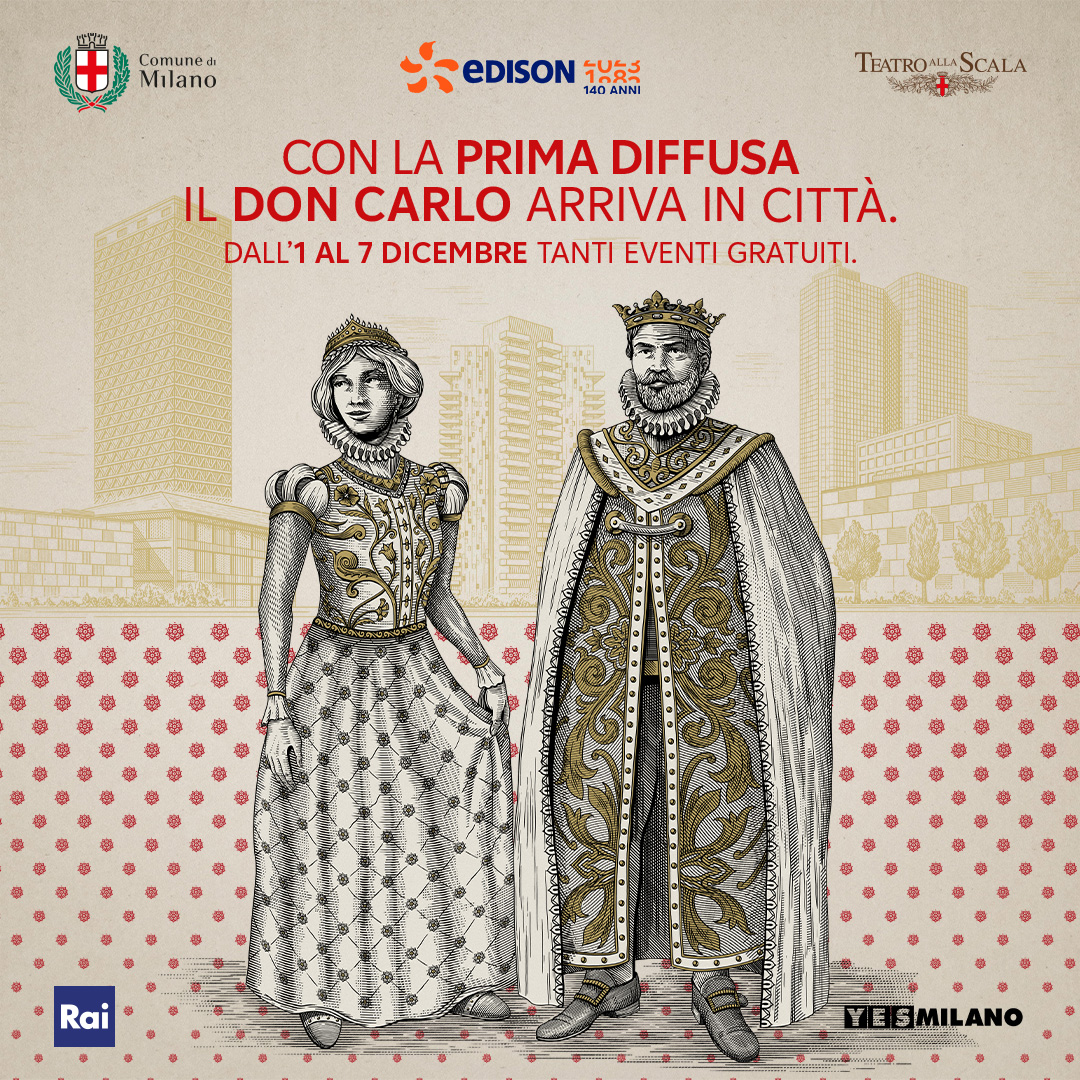 Anche quest’anno Milano si accende grazie a Prima Diffusa: la rassegna culturale giunta alla dodicesima edizione, organizzata da Edison con l’Assessorato alla Cultura del Comune di Milano che porta l’Opera al grande pubblico. Proiezioni, mostre, conferenze e performance artistiche: 35 location per 50 eventi gratuiti ispirati quest’anno al Don Carlo di Giuseppe Verdi che apre la stagione del Teatro alla Scala.